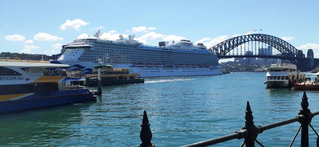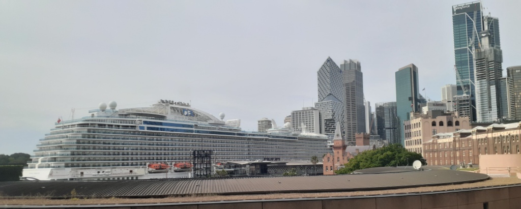 Watching the passing parade from the safety of the rather raucous pub we were very conscious of the number of tourists who appeared to have ventured out of the towering Princess ?????? cruise ship tied up at the Quay's International Cruise Terminal. This boat was so large that it could be seen from any vantage point around the Quay from The Rocks right around to the Opera House. The cruise patrons appeared like locusts ravaging the city with their baseball caps, large SLR cameras slung around their necks and all wearing expensive sneakers. Then there were the distinctive foreign accents as they haggled for items in the local souvenir shops.....very few crossed the pub's threshold. These ships appear to arrive during the dead of night and leave at dusk the following day playing some jaunty tune on their horn as they slipped out of the harbour - tourism vandalism!.........I was also advised that no tours of the SOH were available for the following day as an incoming MSC cruise ship had pre-booked the entire days tour offerings!