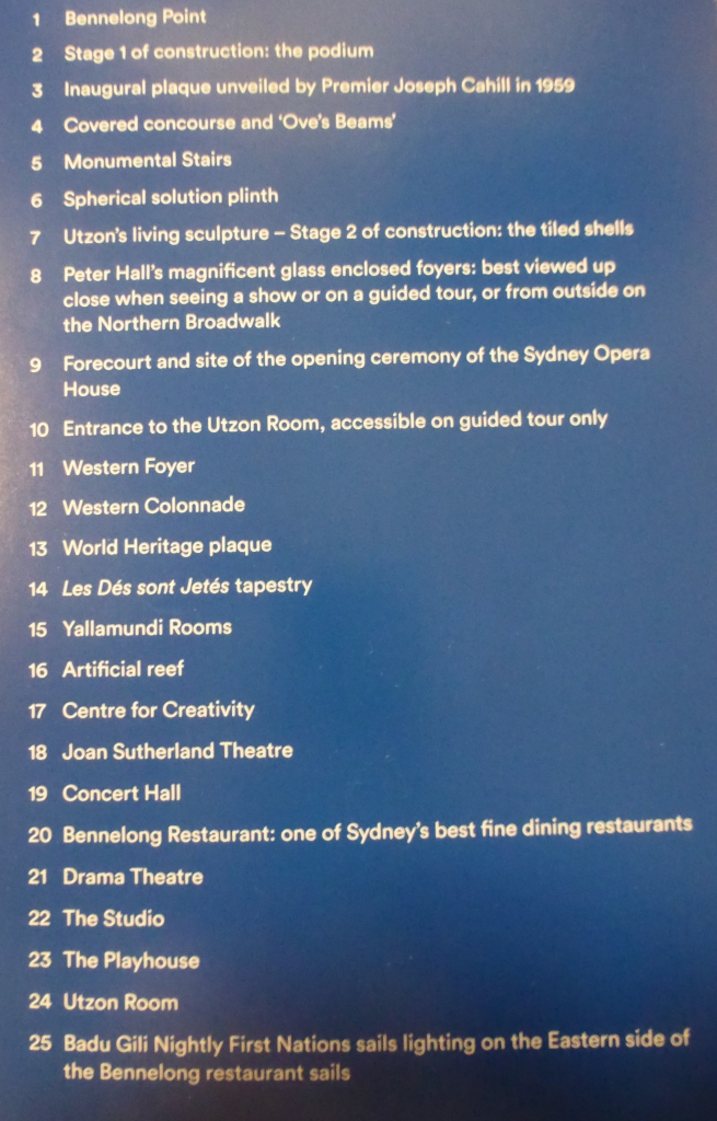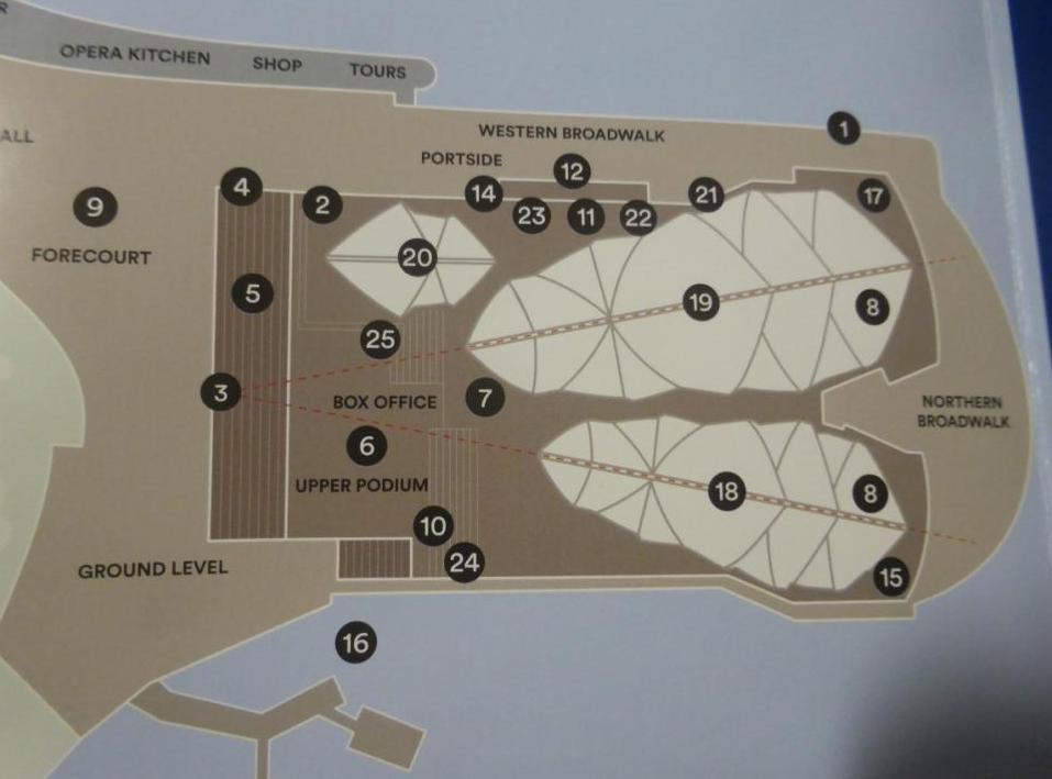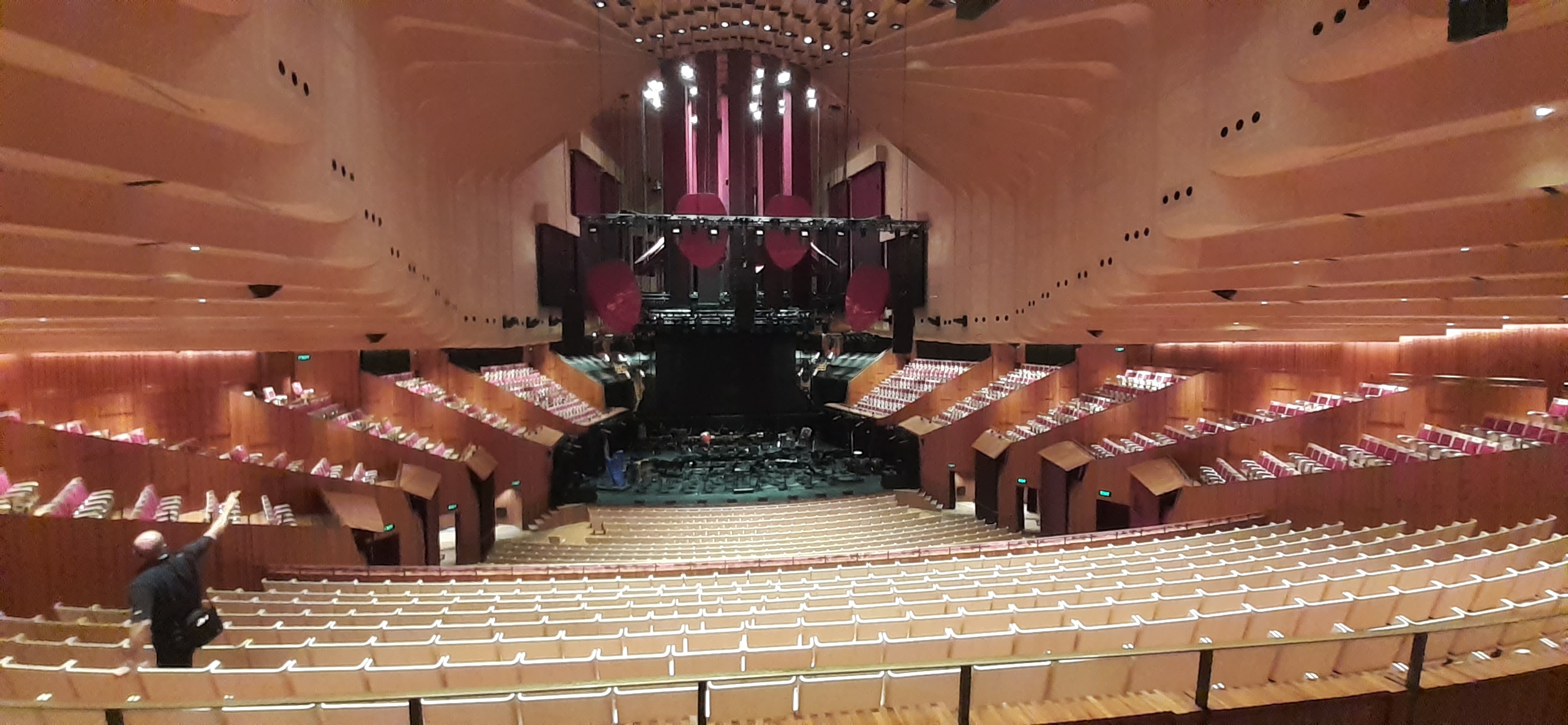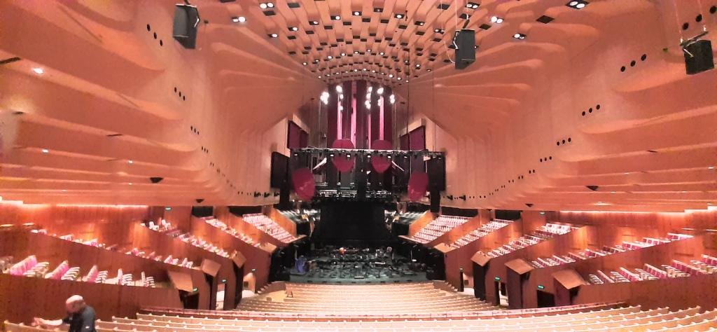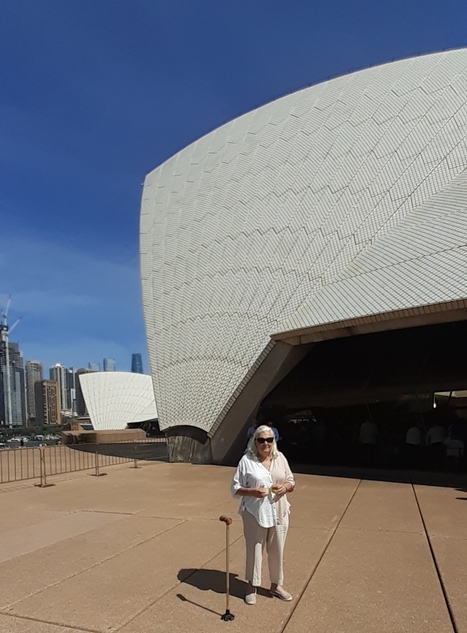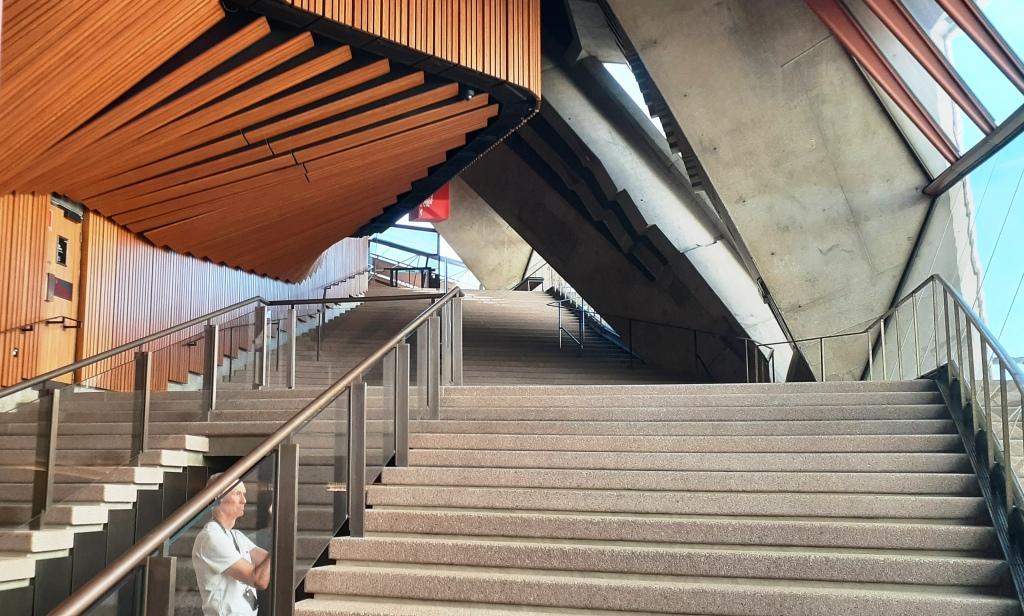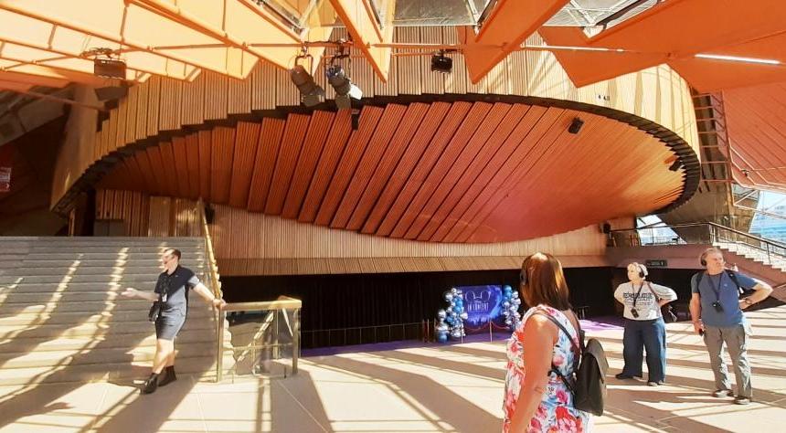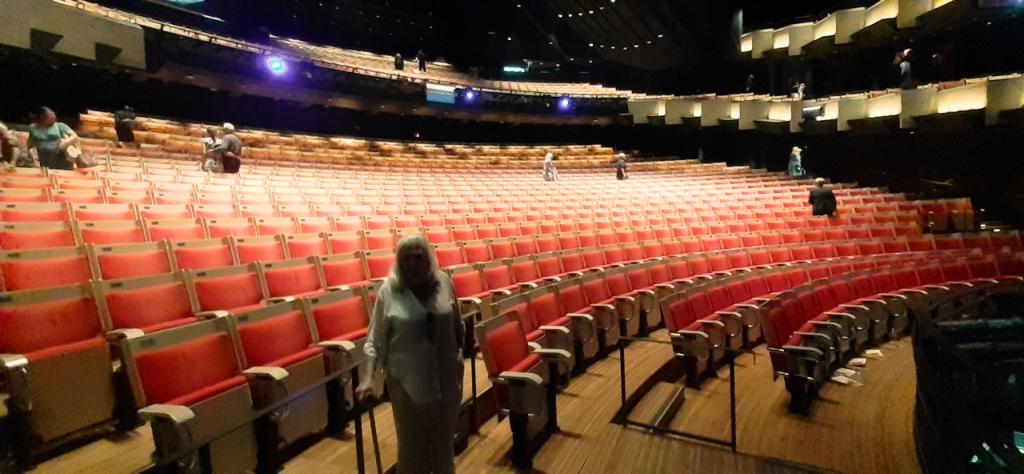 Having settled into our accommodation, I had to walk down and join a pre-booked tour of the Sydney Opera House (SOH) which I did primarily to familiarise myself with the access issues Maria might face when we were to attend the Opera two days hence. There turned out to be none. Patrons with disabilities attending by Taxi are met by SOH golf cart which delivers them to the ticket office where they can access a wheel chair, if required. Our tour concentrated on the principal Concert Hall (capacity 2500) and one of the smaller drama theatres.