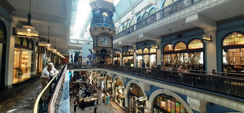 The next day was Friday 14 March and our Wedding Anniversary. I decided that we should initially celebrate with a fancy breakfast at a cafe just out the front of the Queen Victoria Building (QBV) which is a much celebrated high fashion shopping precinct. As it was located in George Street we traveled using the Light Train again. We also strolled down Pitt Street.