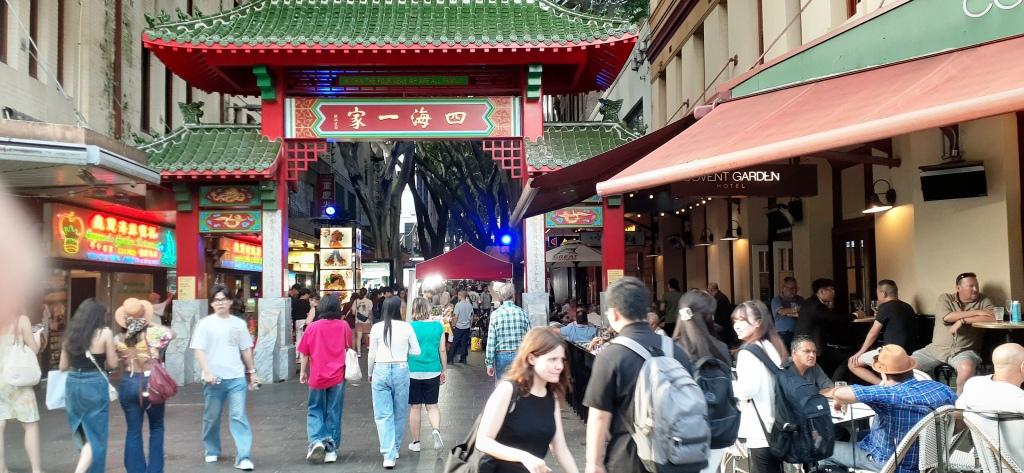 We then returned to our accommodation vide taxi and prepared to take the Light Rail up to Chinatown where on Friday nights, in Dixon Street, they hold a weekly food street market. It was a very colourful and lively affair and we finally settled down to plates of Peking Duck, Pork Belly and Stir-fried Beans with minced Pork and XO. I also re-acquainted myself with the odd Tsiangtao beer. I suppose we have seen plenty of similar markets in Singapore, Beijing, HK, Ho Chi Minh and Yangon but I never fail to be impressed by the physical vitality and noise associated with such events as well as the sweet smells of garlic, ginger, soy, being used in the various food offerings.