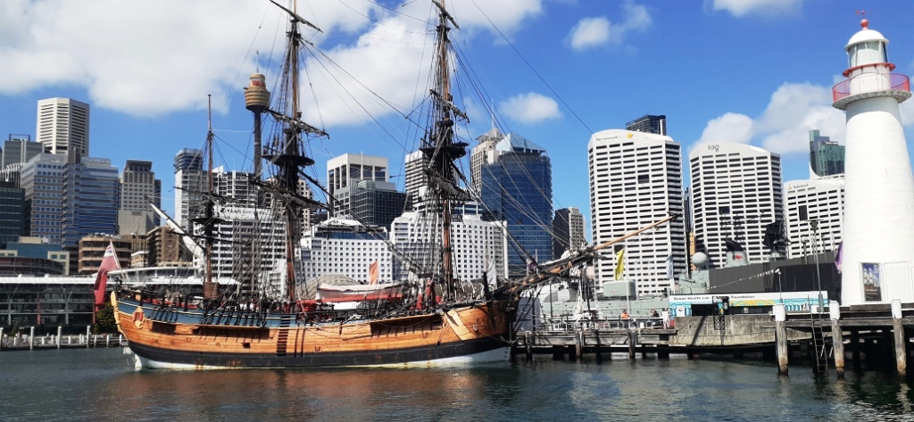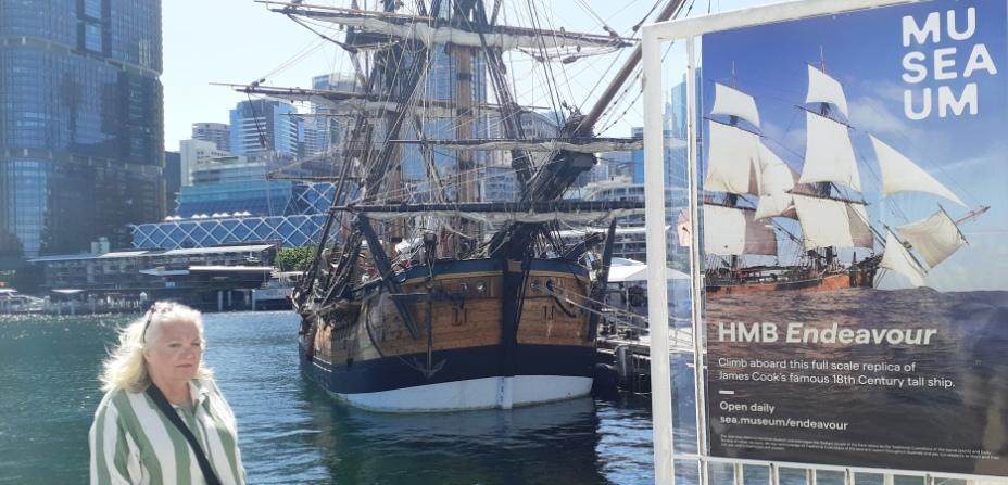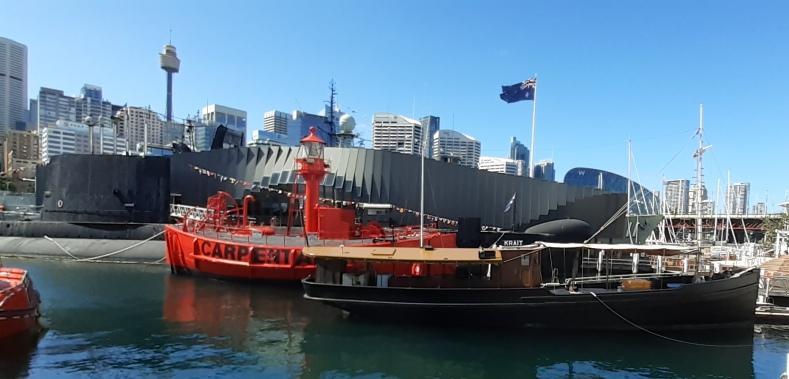 Monday our final day in Sydney was initially spent traveling on the Light Rail around to Darling Harbour to visit the Maritime Museum. The museum had an eclectic exhibition inside including: Aboriginal seafaring knowledge, early maritime exploration, Harrison's chronometer for measuring Longitude, sextants and then the rest were exhibits about Royal Australian Navy. Outside exhibits include the replicas of Cook's HMB Endeavour, replica of 18th C Dutch ship Duyfken, the WWII sabotage vessel the Krait, the submarine Onslow, the destroyer Vampire plus others which your $30 entry fee entitled you to clamber over; which I did.