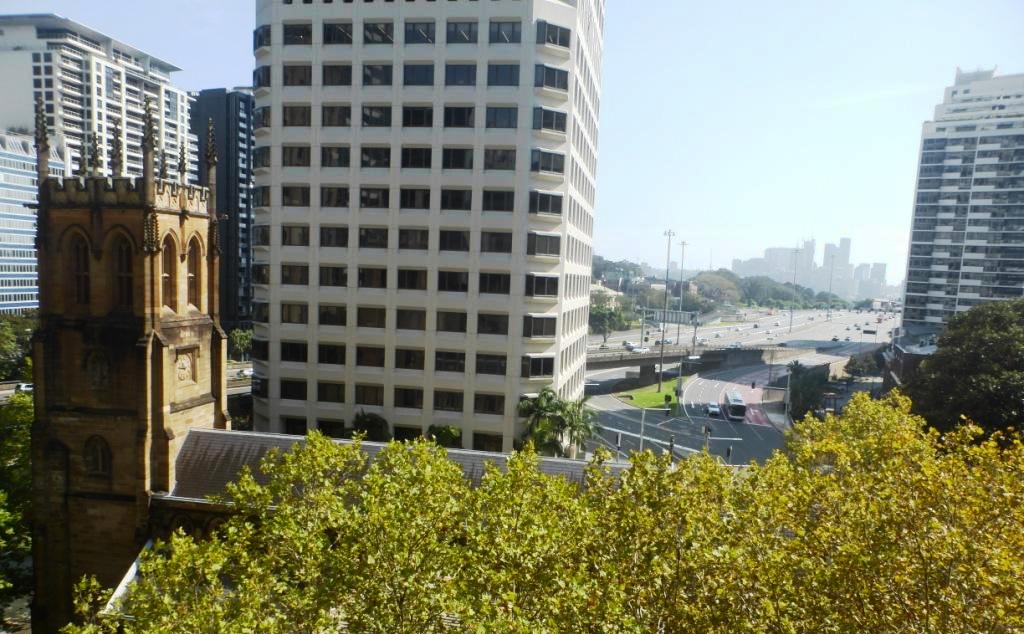 From the balcony of our 8th floor suite we looked over St Phillips Anglican Church (which dates from 1848) and then down to the Bradfield Highway's approach to the Sydney Harbour Bridge.