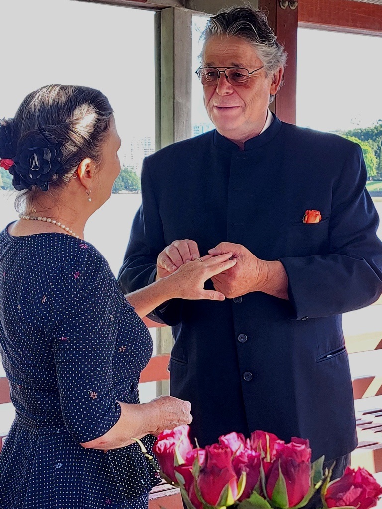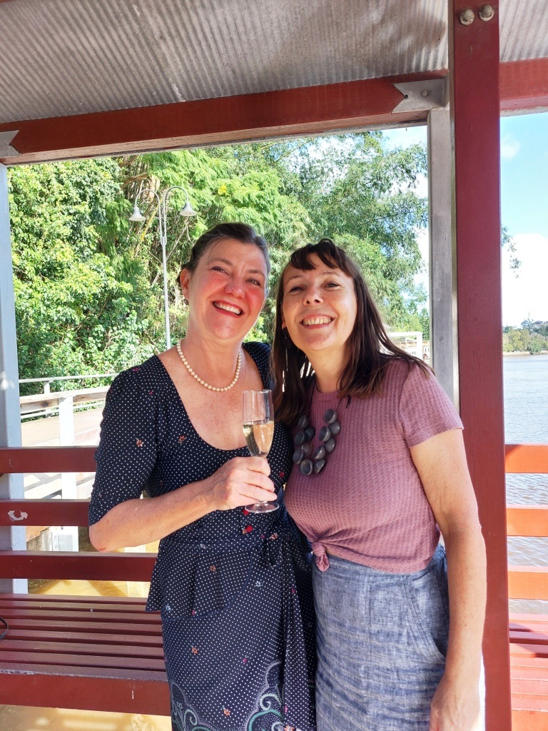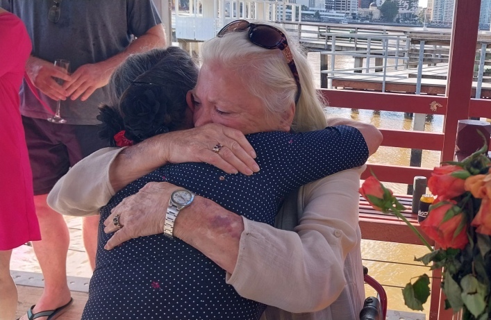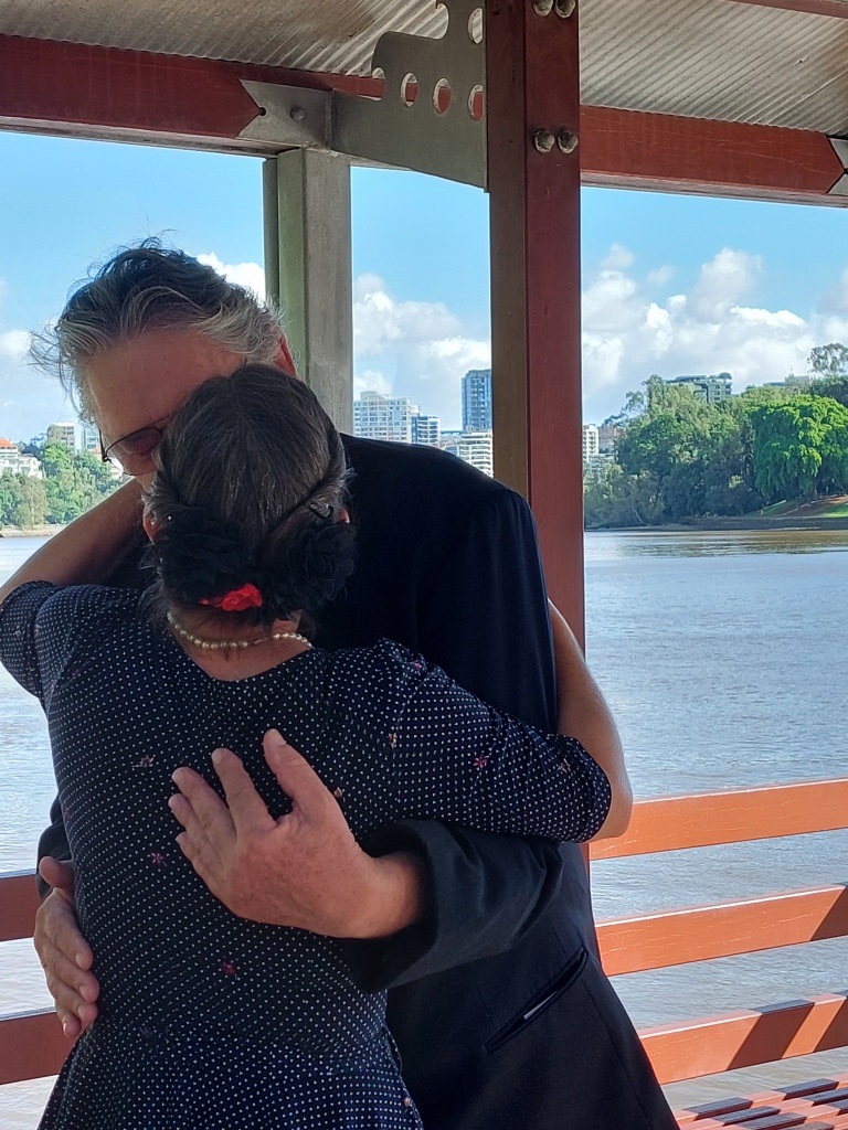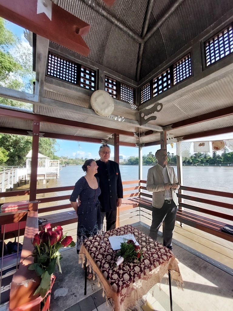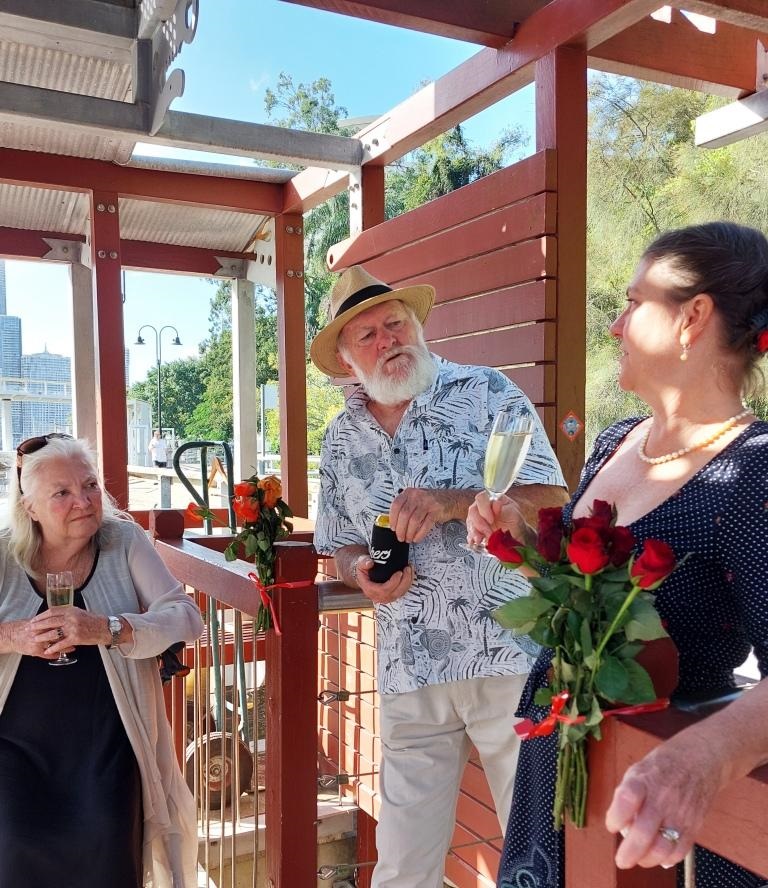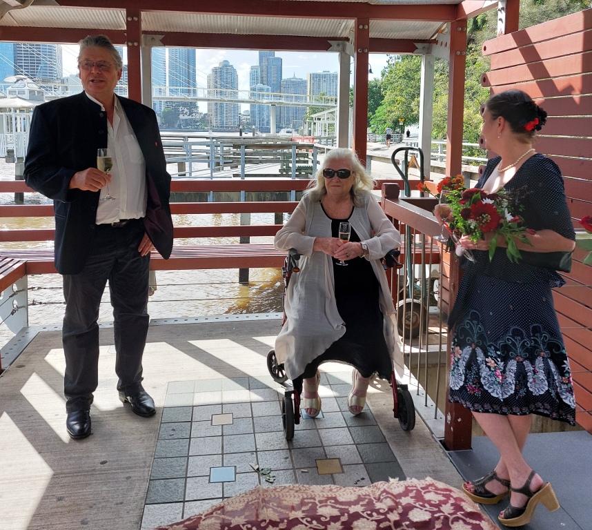 The weather thankfully cleared the day of the wedding and the backdrop of the city skyline and newly completed Kangaroo Point footbridge was sensational. Maria chose to use a walker to get down to the Pavilion on account of some lingering back pain but was able to join in the rest of the festivities unworried.